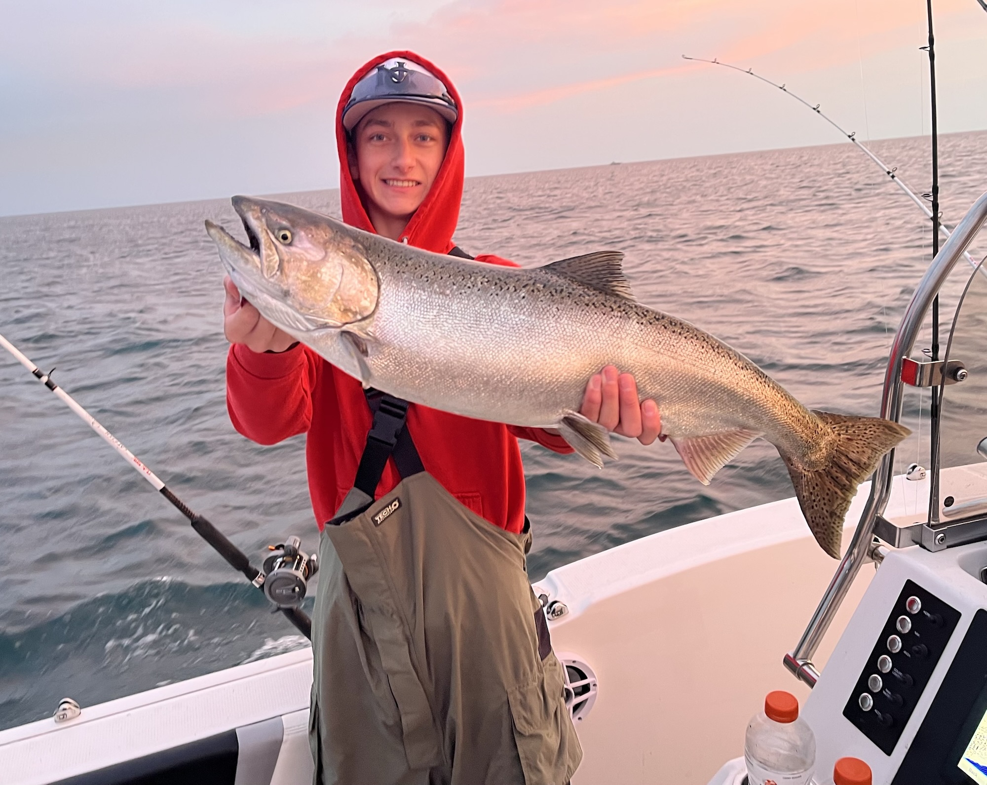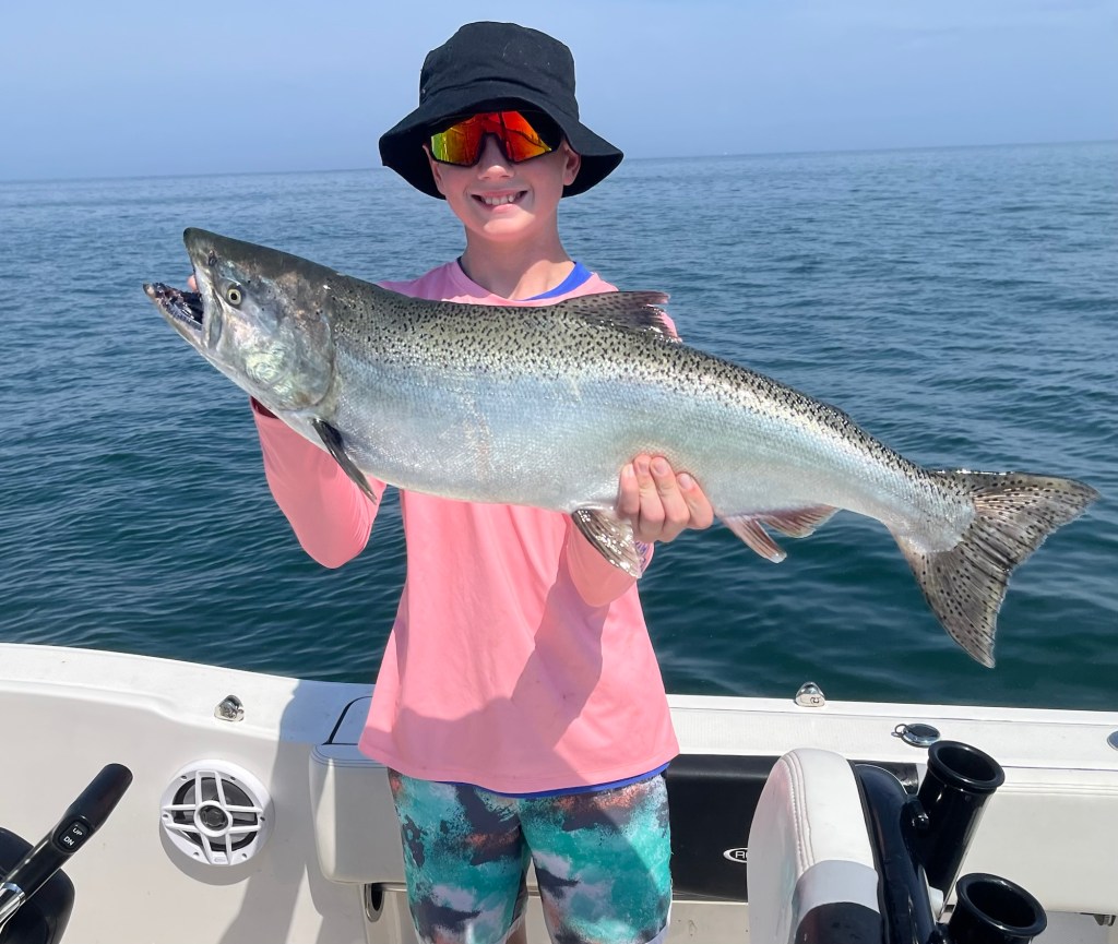 The run typically kicks off in late August, peaks in September, and can stretch into early October depending on water temperatures and rainfall. As the lake cools, salmon move closer to shore, staging around piers, harbors, and river mouths — easy pickings for both boat and shore anglers.